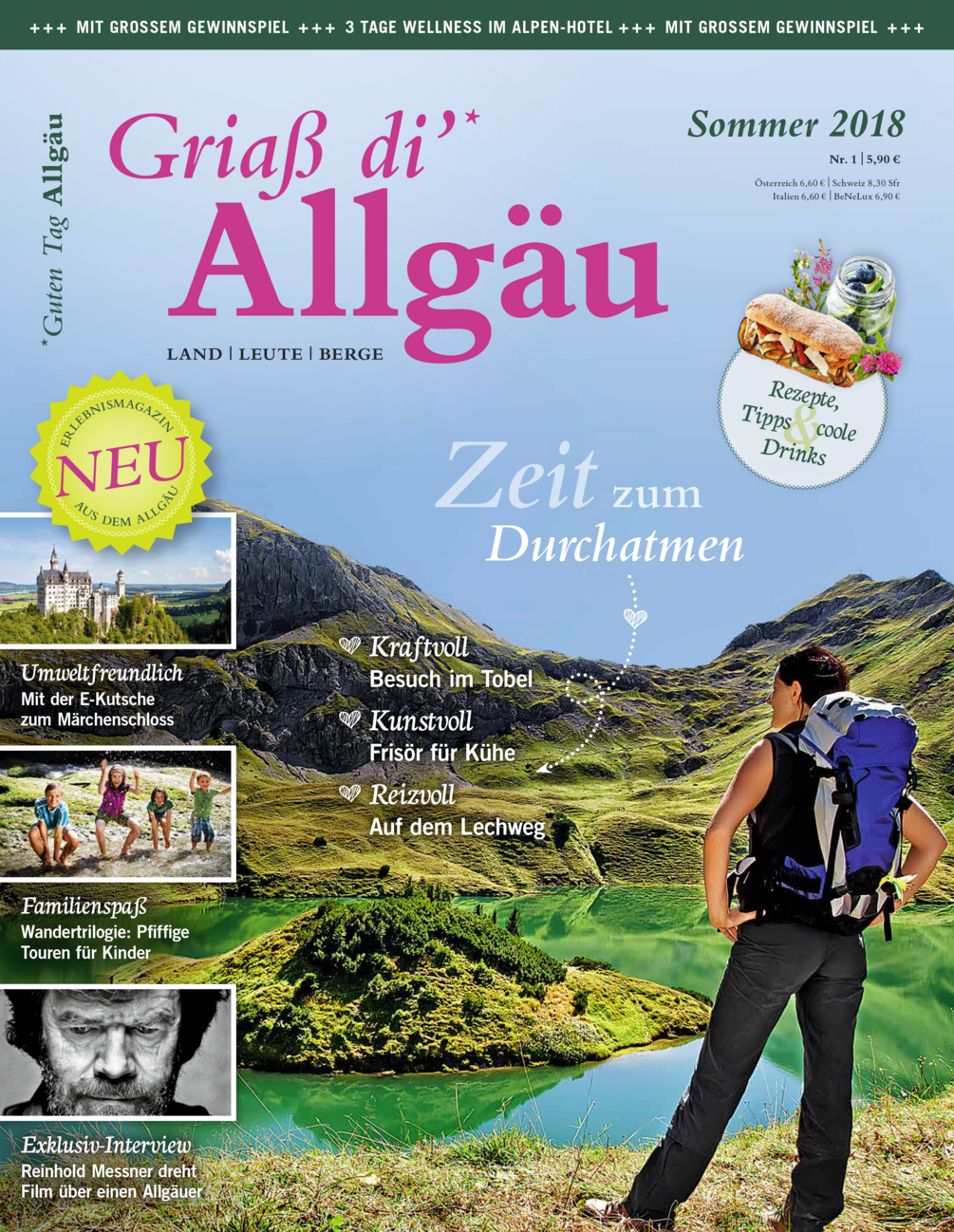 Zudem bietet Griaß di‘ Allgäu Rezepte und coole Drinks, die Anleitung zu einer Badetasche, Deko-Vorschläge für den Garten sowie ein Gewinnspiel mit lukrativen Preisen.